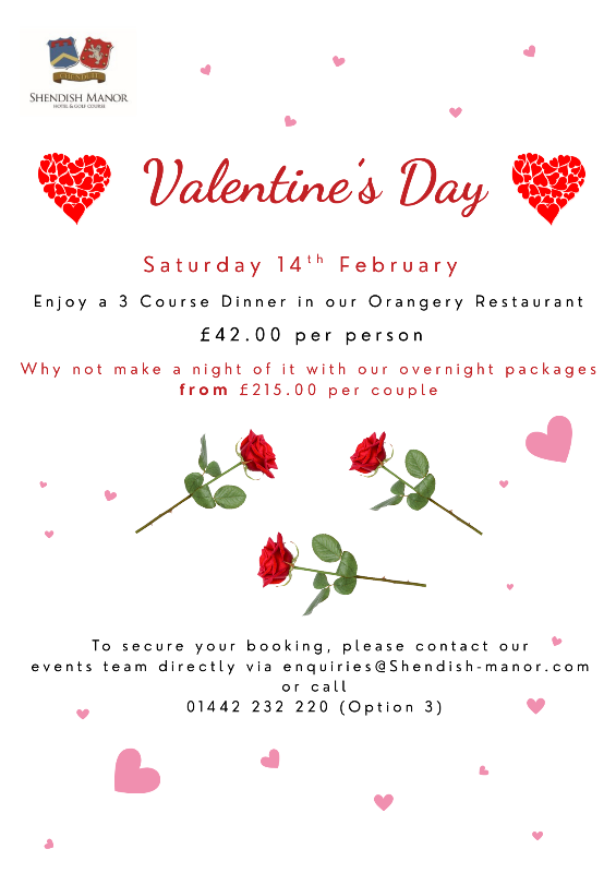 Join us on Saturday 14th February 2026 for the perfect Valentine's Weekend meal in our beautiful Orangery Restaurant.